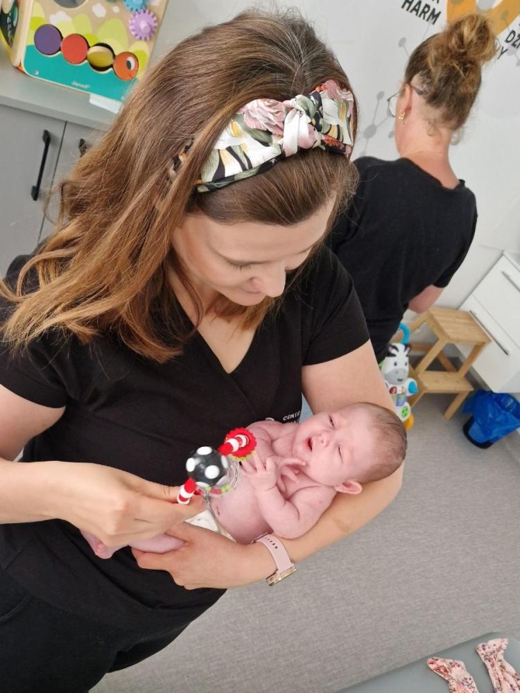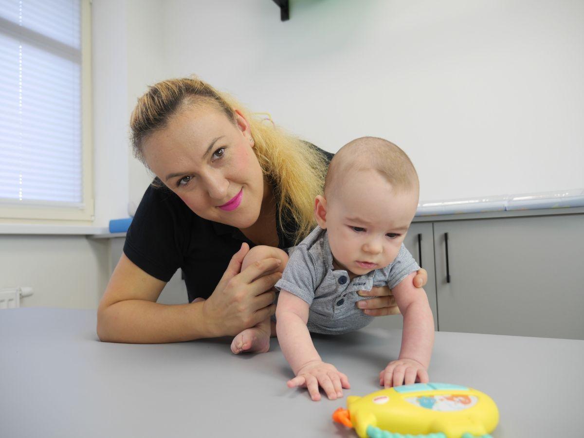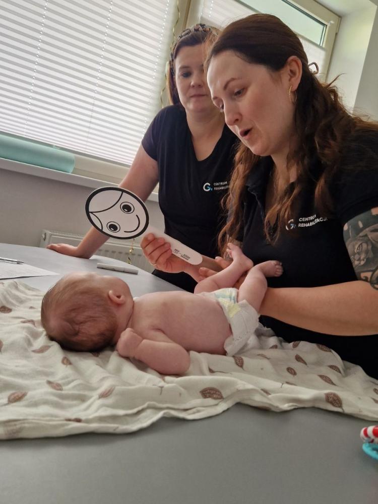 Turnus rozpoczynamy od badania dziecka oraz wywiadu z rodzicem. Terapeuta ocenia napięcie mięśniowe, zakresy ruchomości oraz aktualny etap rozwoju motorycznego i poznawczego. Obserwujemy, w jaki sposób niemowlę inicjuje ruchy, jak reaguje na bodźce sensoryczne oraz jak radzi sobie z zadaniami adekwatnymi do wieku.